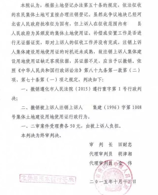 1,资规局和县政府征收宅基地,不予补偿,直接注销农民集体土地使用证,二审法院判决撤销违法行为;本次判决中认定在没有补偿安置的情况下注销原告土地登记条件不具备,故意发撤销注销行为。